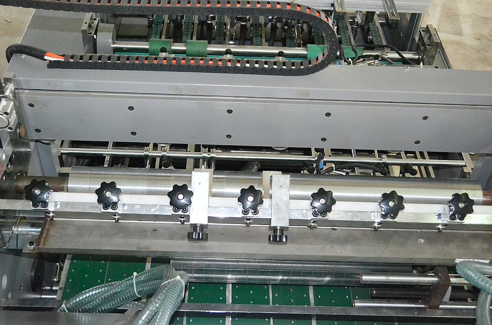 1020自動貼窗機(jī)對紙品窗口貼膜由進(jìn)紙、輸紙、上膠、割口、裁切、貼膜、收紙等七個工作順序完成制品的加工。